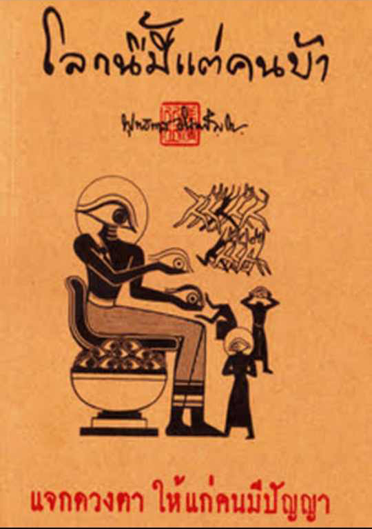 คำว่า "โลกนี้มีแต่คนบ้า" ในคำสอนของหลวงปู่พุทธทาส ที่เทศน์สั่งสอน และบอกทางสว่างของชีวิตอยู่เสมอ เมื่อครั้งที่ท่านยังมีชีวิตอยู่ คนที่รู้และเข้าใจธรรมะอย่างลึกซึ้ง จึงจะเข้าใจความหมายนี้ได้ แต่.. ในสังคมของมนุษย์ทั่วไปในปัจจุบันนี้ หากผู้ใดมีทิฏฐิ (ความเห็น) และใช้ชีวิตที่วิปริต แตกต่างไปจากหมู่คณะในสังคมนั้นแล้ว ก็จะถูกเรียกว่า "คนบ้า" ในความหมาย "ภาษาธรรม" นี้แล้ว คือการขาดสติ, ขาดปัญญา, ขาดการไตร่ตรอง, พินิจพิจารณาอย่างแยบคาย, ในความเชื่อ, ในการกระทำ, เห็นถูกเป็นผิด, เห็นผิดเป็นถูก, เห็นบาปเป็นบุญ, เห็นบุญเป็นบาป, เป็นต้น เมื่อมีความเห็นผิดเช่นนี้แล้ว การกระทำและทิศทางของชีวิตจึงเดินไปสู่ความหลงผิด จึงเป็นที่มาของคำ คำว่า "โลกนี้มีแต่คนบ้า" ในสังคมชาวพุทธ จึงมีการ "แจกดวงตา ให้คนมีปัญญา" ในรูปแบบ งานบวชเนกขัมมะปฏิบัติธรรม, คอร์สปฏิบัติธรรม, นั่งสมาธิ, เดินจงกลม, กำหนดมีสติกับการเคลื่อนไหวที่กาย, เป็นต้น และเรียกรูปแบบทั้งหลายเหล่านั้นว่า "วิปัสสนากรรมฐาน" เพื่อให้เกิดปัญญารู้รอบ และสิ่งที่จะให้รู้นั้นคือ "รู้เห็นตามความเป็นจริง" เมื่อมีปัญญารู้เห็นตามความเป็นจริงแล้ว การกระทำ ความเชื่อในสิ่งต่างฯ จึงประกอบด้วยสติปัญญา เมื่อนั้นจึงนำพาชีวิตดำเนินสู่ความถูกต้อง และออกจากความบ้าในที่สุด..... คำว่า "แจกดวงตา ให้คนมีปัญญา" จึงหมายถึงให้คนทั้งหลายนำพระธรรมคำสอนในพุทธศาสนาไปสู่การปฏิบัติอย่างถูกต้อง ทั้งทาน, ศีล, ภาวนา, สมถะ, และวิปัสสนากรรมฐาน, เพือความเป็น "ผู้มีดวงตา และปัญญา" อย่างแท้จริง..... |